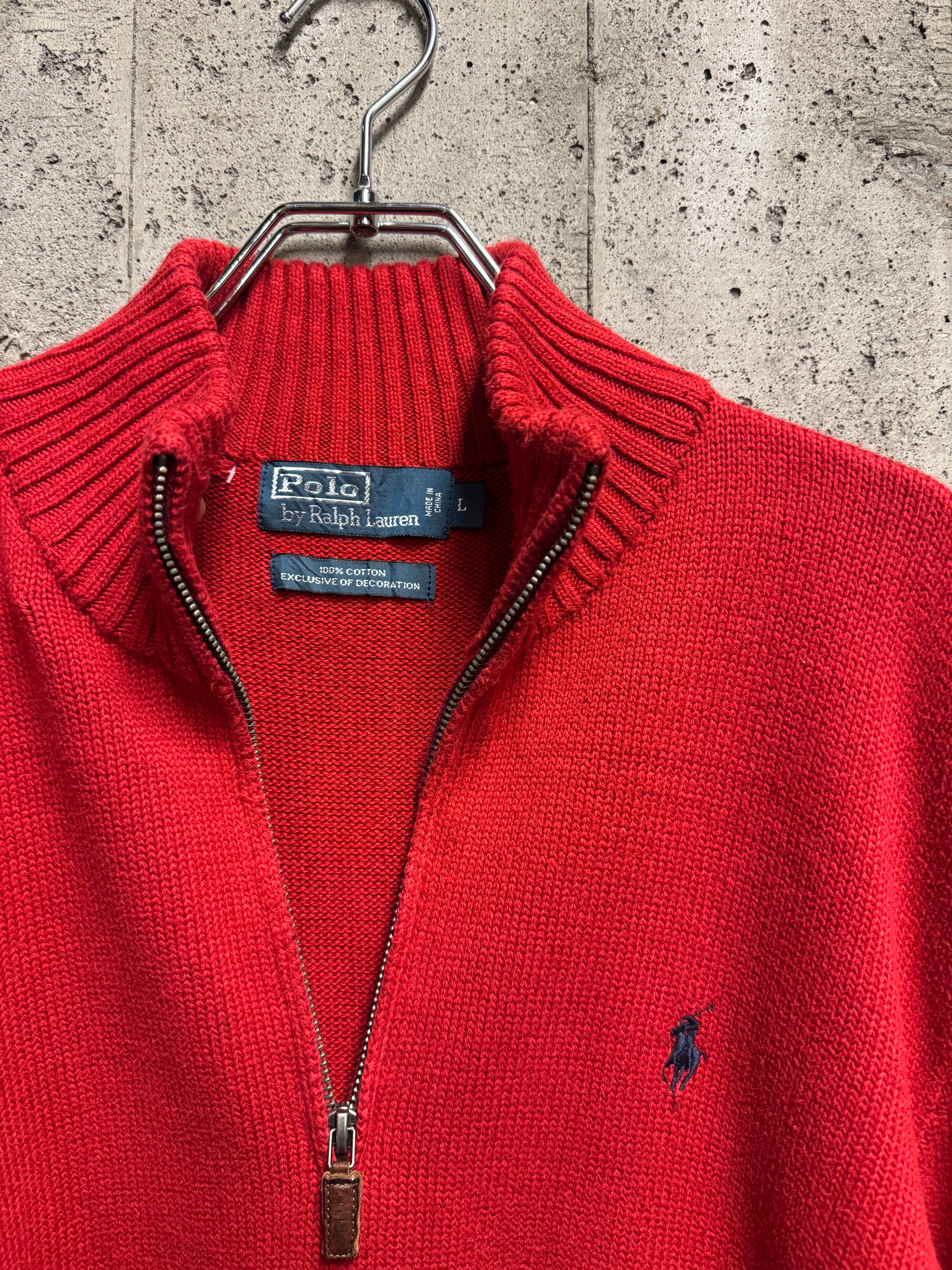 [90s]Polo Ralph Lauren Cotton Half Zip Knit Vintage L
