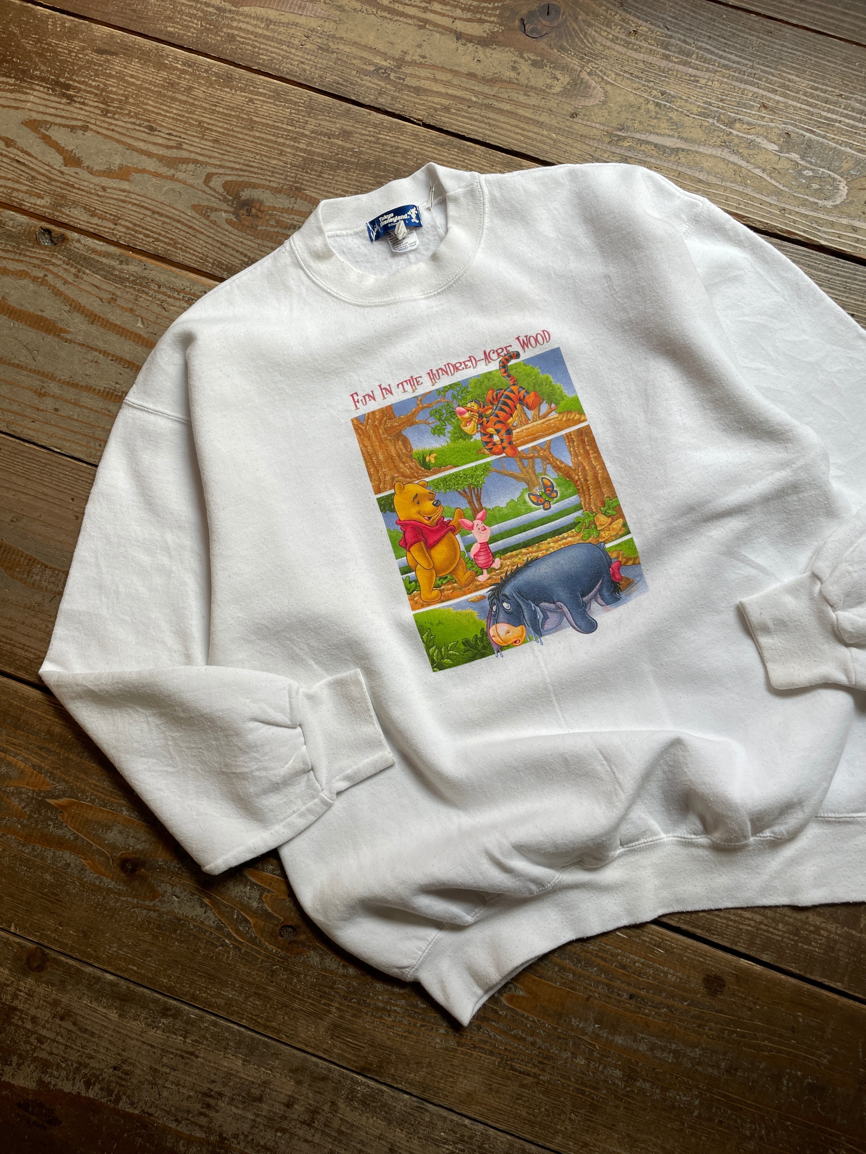 [90s]Tokyo Disneyland Pooh&Friends Print Sweat Vintage L