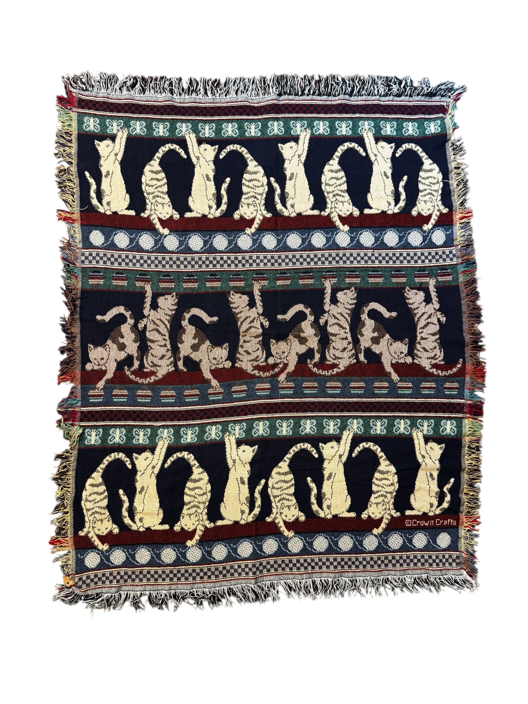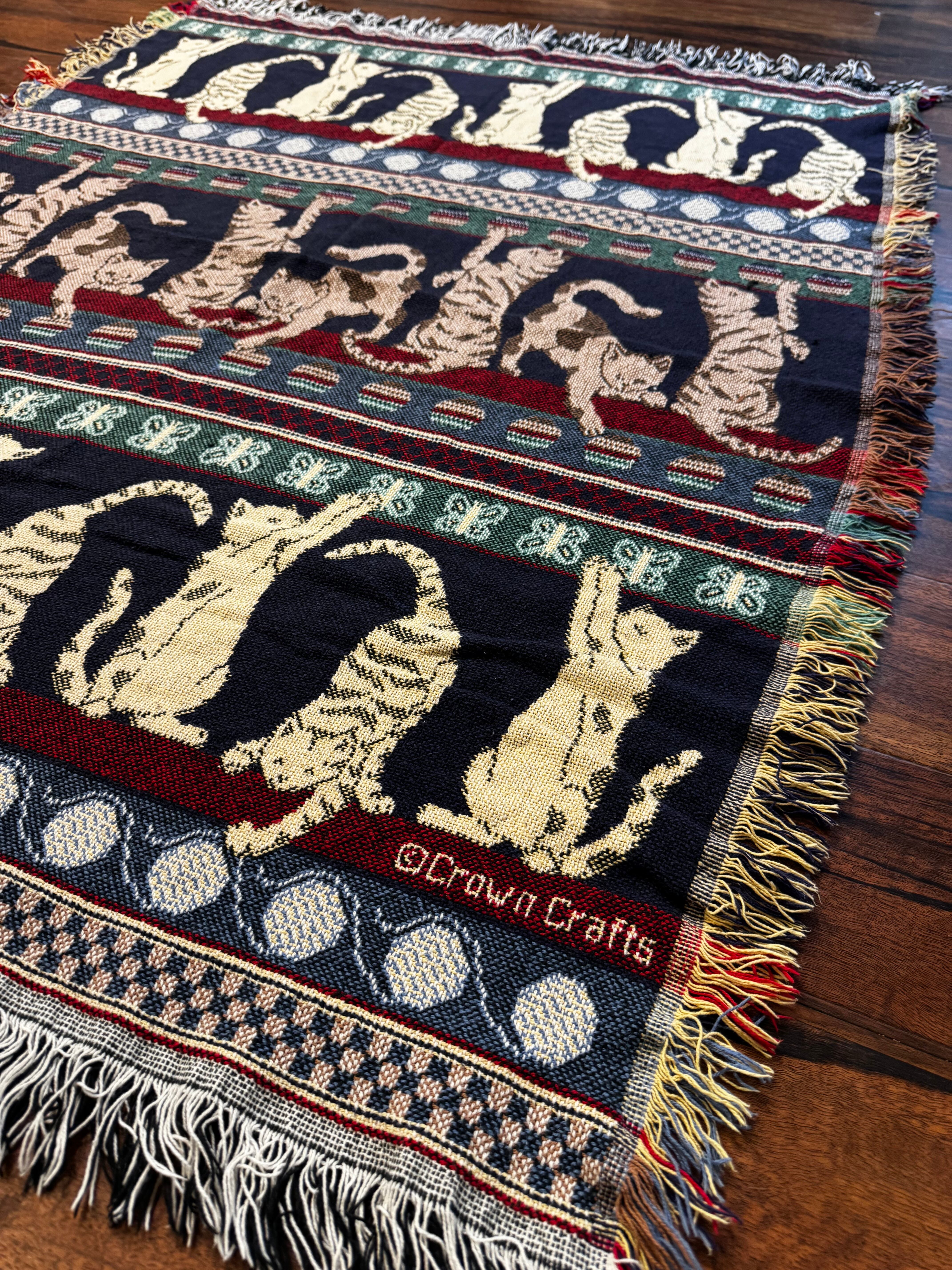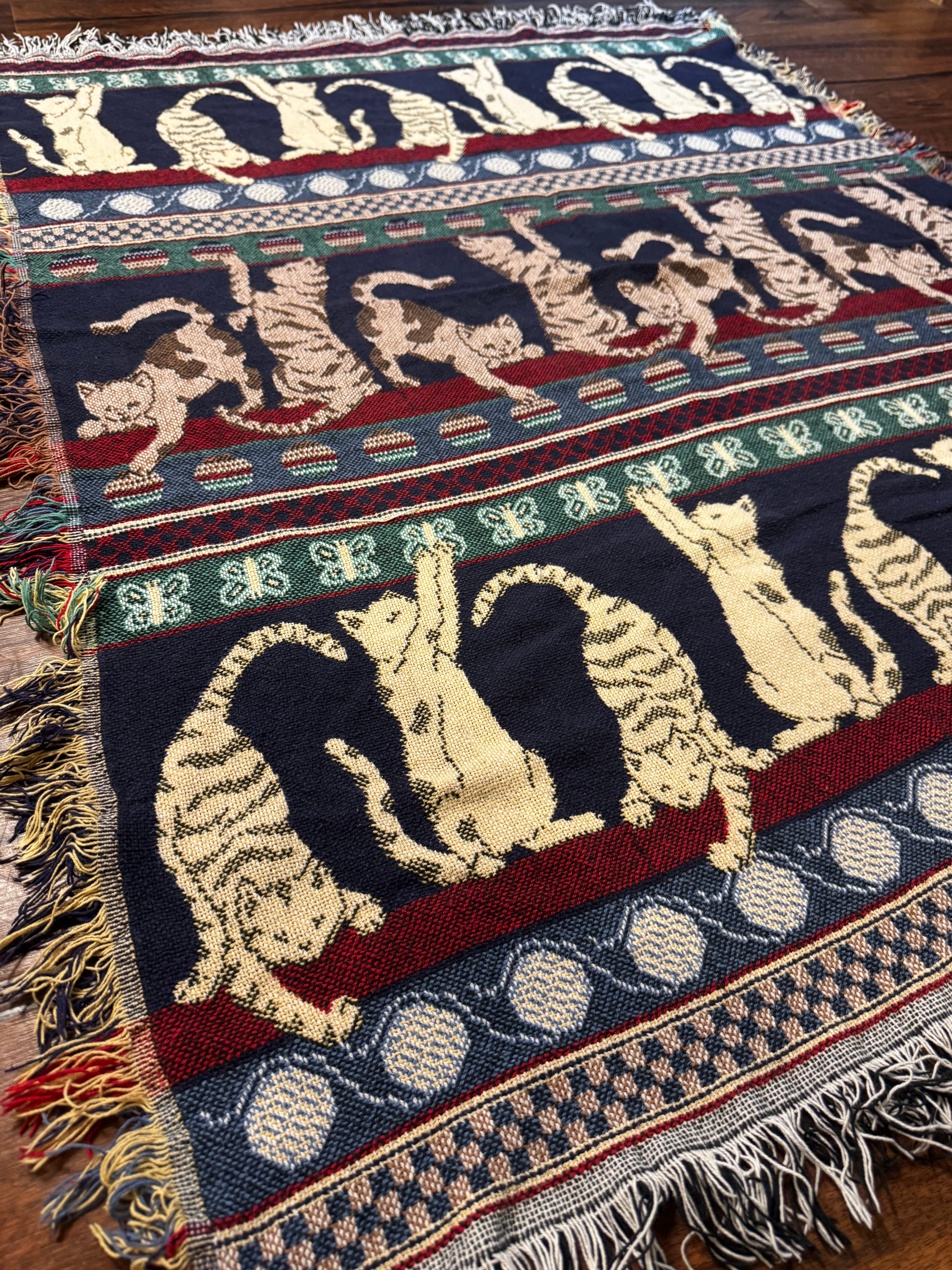 Midnight Stripe Cats Woven Rug